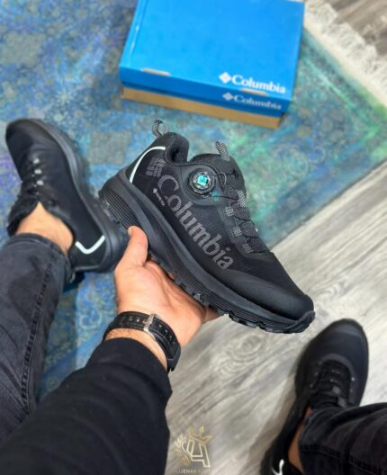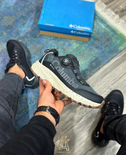کتونی کلمبیا رنگ مشکی با جزییات سبز و زیره روشن مردانه