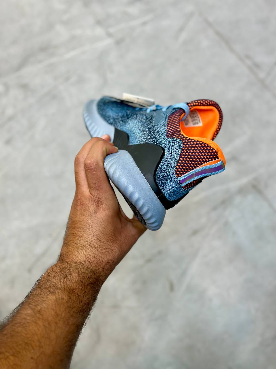 کتونی اسیکس رنگ مشکی با جزییات آبی نارنجی مردانه
